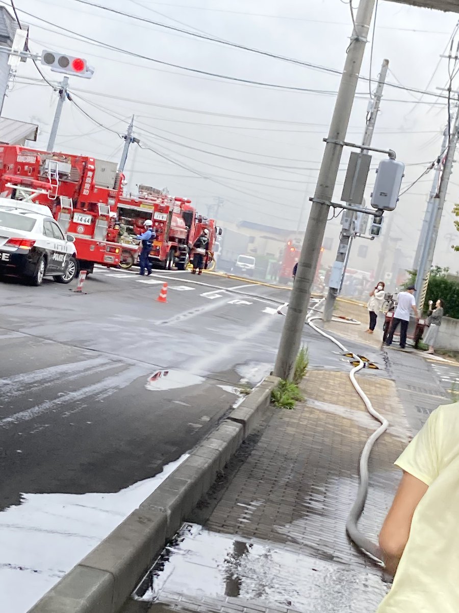って思って出てみたらアパートの向こう側めっちゃ燃えてる🔥