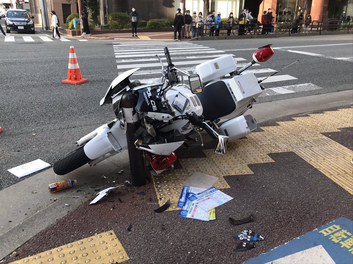同署の発表では、巡査部長が一般車両を規制するコーン標識が回収されていないことに気付いて減速したところ、巡査が追突したという。2台とも転倒後に横滑りしたが、巻き込まれた人や車はいなかった。現場は片側2車線で、2台は大会関係車両の最後尾を走っていた。