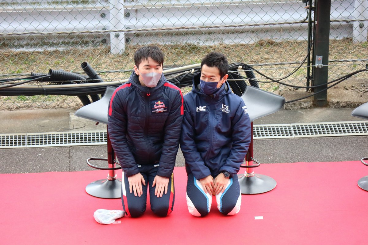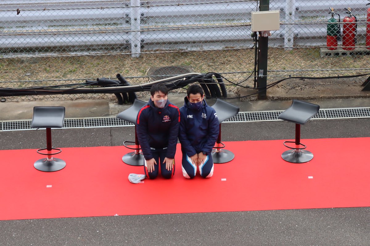 ▼やらかしたドライバーの山本尚貴と笹原右京は2人仲良く土下座で謝罪