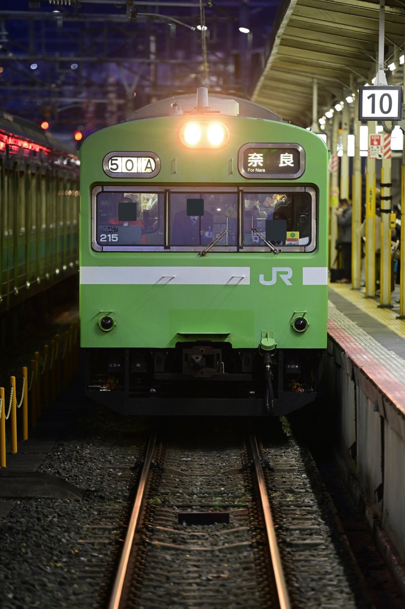 柔らかい汽笛の音で奈良線103系最終列車は奈良駅を発車しました。環状線から103系が引退してからもしぶとく生き残ってきた奈良の103系も今日で終わりですか… t.co/GrTwClInpU