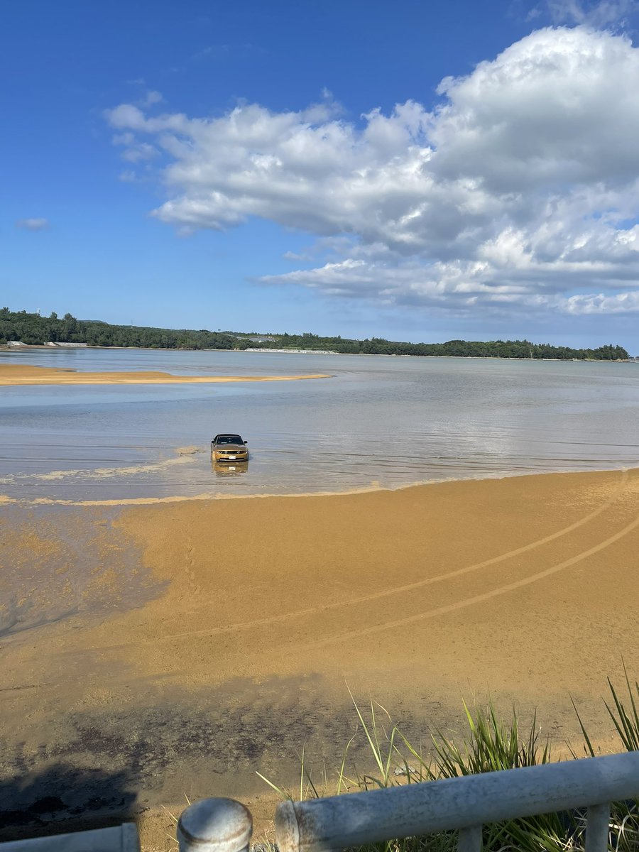 @Kyugusikawasi @makatyoke レンタカーが砂浜に降りてハマったみたいですw 米軍の水陸両用車の訓練で砂浜に降りれるようになってます