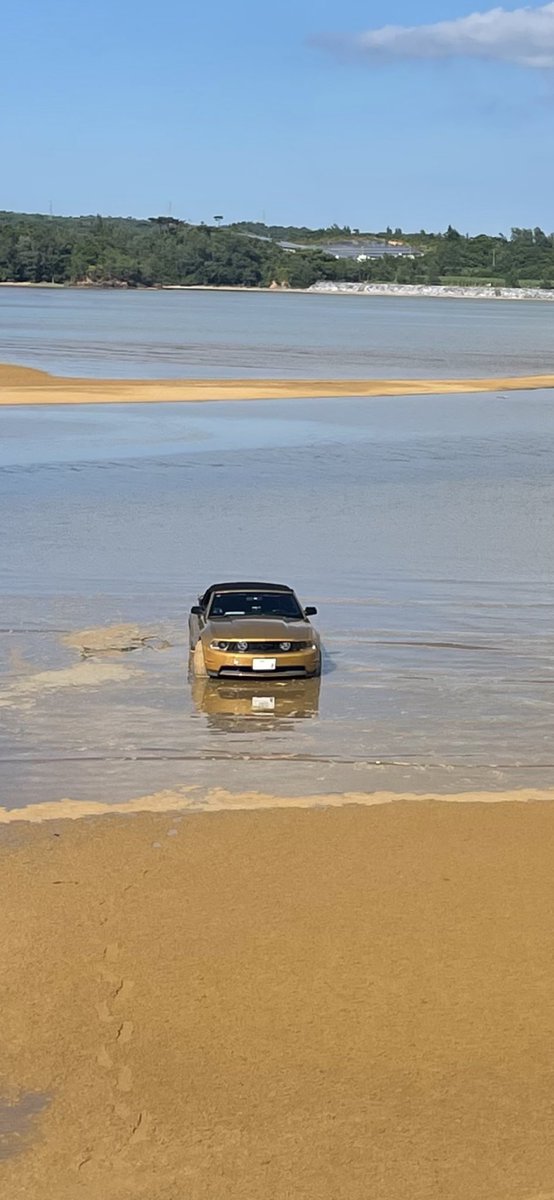 マスタングはなぜ海で水没していたのか? 砂浜に降りてハマった模様