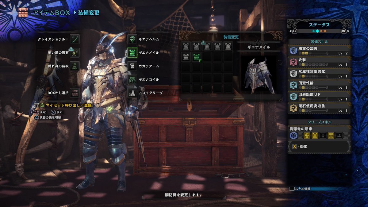 防具一式でスキル発動じゃなくなったから見た目で色々楽しめるけどハズレももちろんありそ。。電車ん中でMHWやりたくてうずうず。。