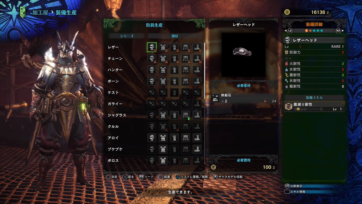 ゾラ・マグダラオス完全に飽きた。マグナ上位装備あと脚だけなんや… 見た目も割と好きだし何気にスキルも優秀…だった気がする。明日背甲を取りに行こう… おやすみ 4時です #MHW https://t.co/jFg9OjckF2