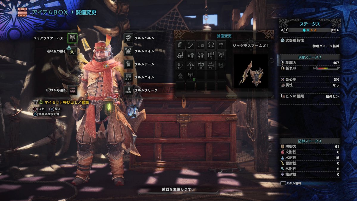 【MHW】いまのところのスラッシュアックス用スキル構成。(HR6)見た目が蛮族……。 https://t.co/quiN6bc9yF