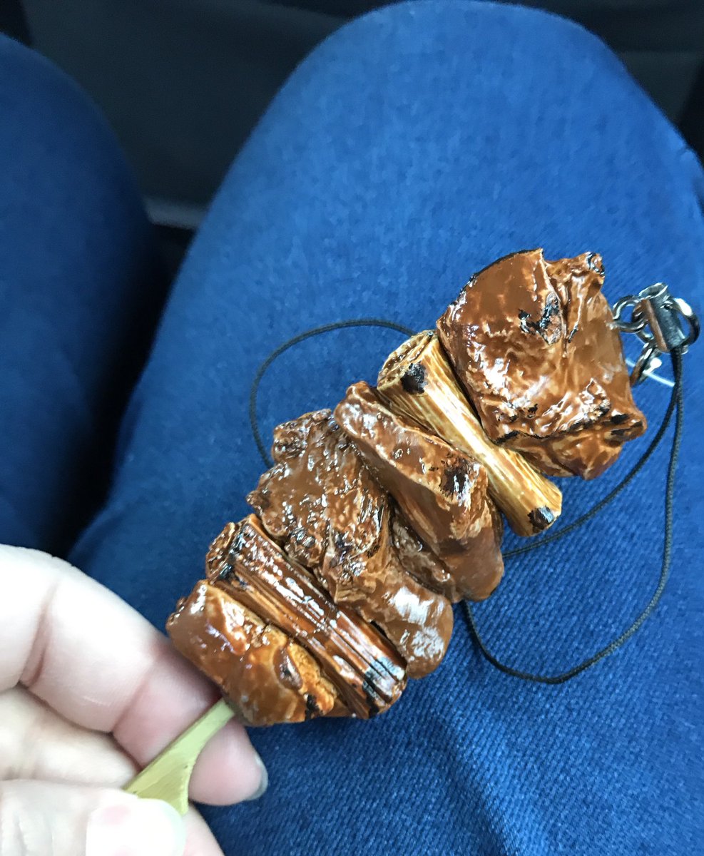 焼き鳥ガチャなるものを見つけたから回したらねぎまのたれが出てきたので早速カバンにつけた https://t.co/2oEQu1mx08