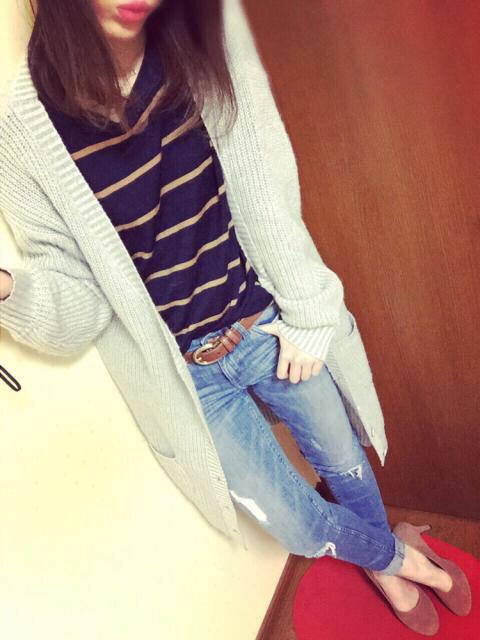 ストライプ柄のロングカーディガンはIライン強調効果でスラリと見える魔法のアイテム♪