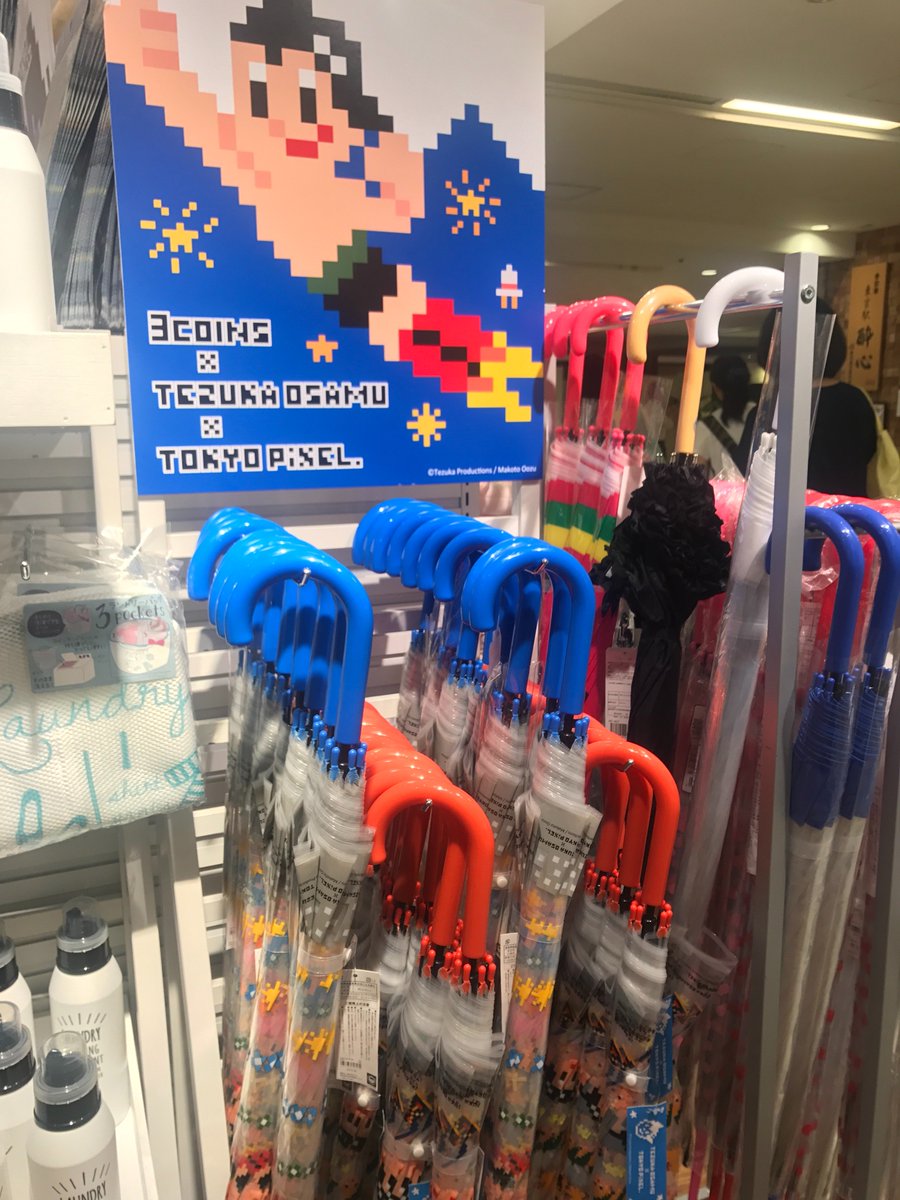 こないだ3COINSで買った手塚治虫×TOKYO PiXEL.の傘をついに使う時が来たので雨の日楽しい https://t.co/t7URPFhtWT