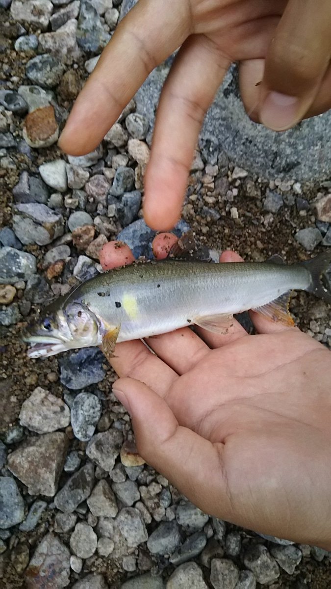 橋の上から見ててアユっぽいシルエットの魚居るなーって思ってたけどまさか釣れるとはw https://t.co/G3ZTBmNpHu