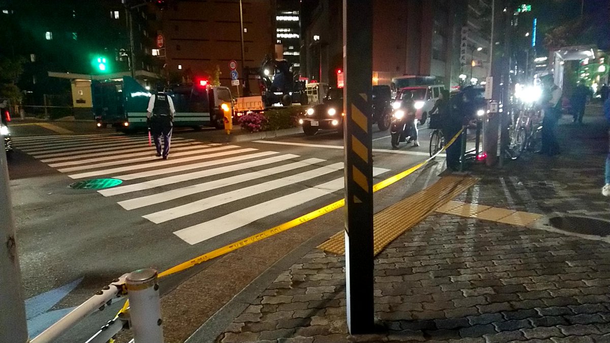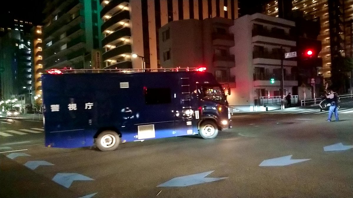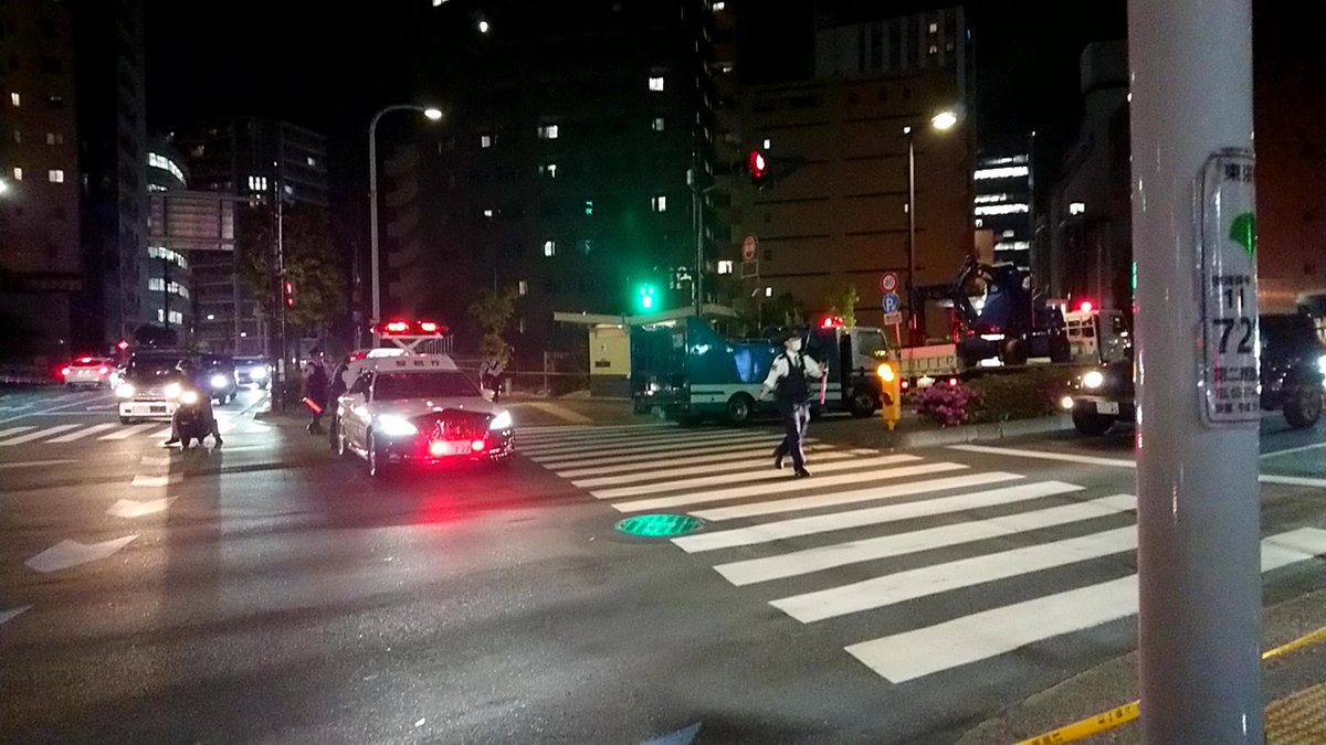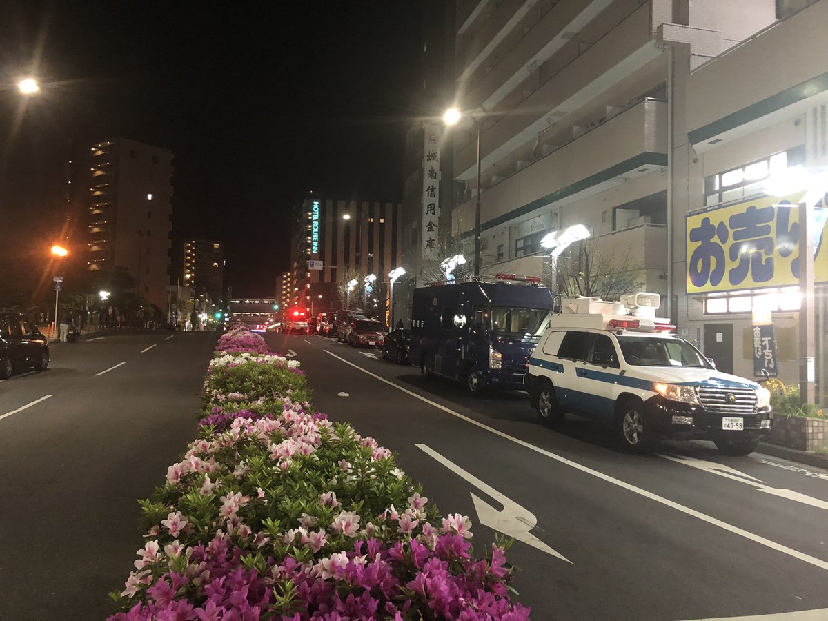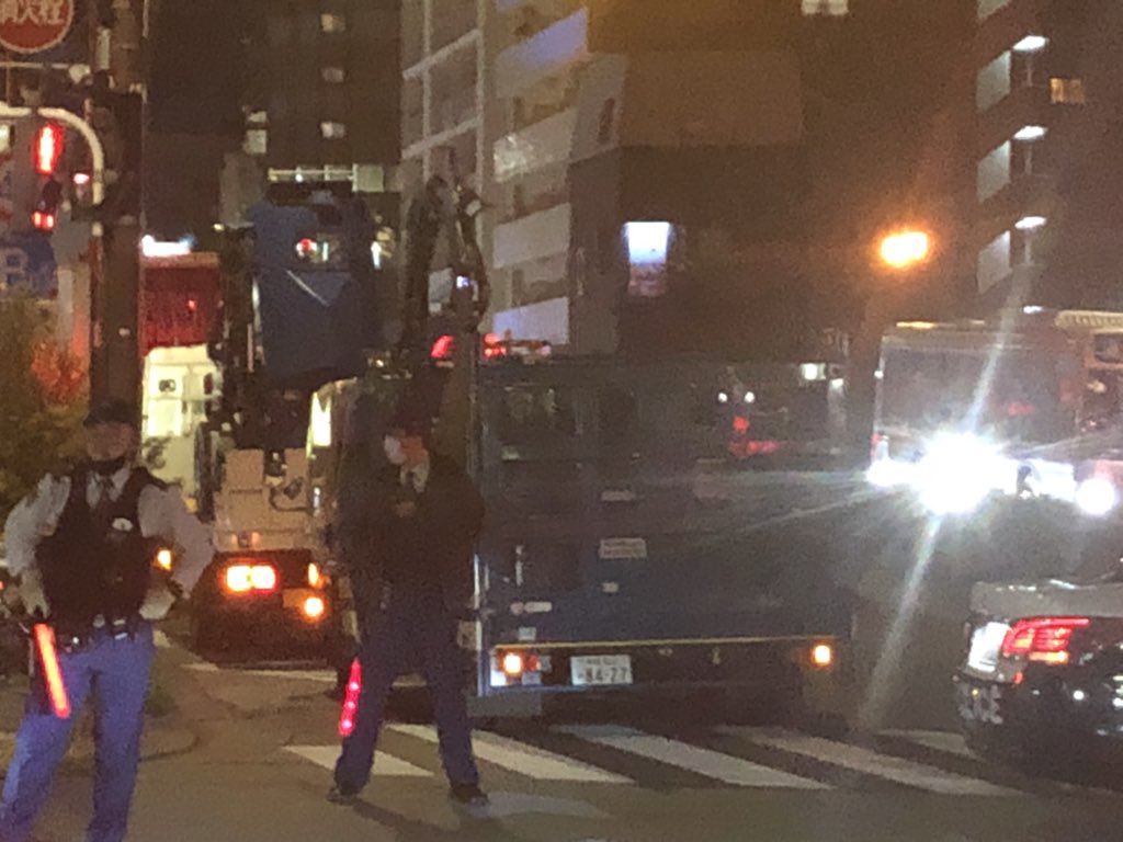 さっき通ったけど、物々しい雰囲気だった。あやめ橋からJR駅前方面行けない。