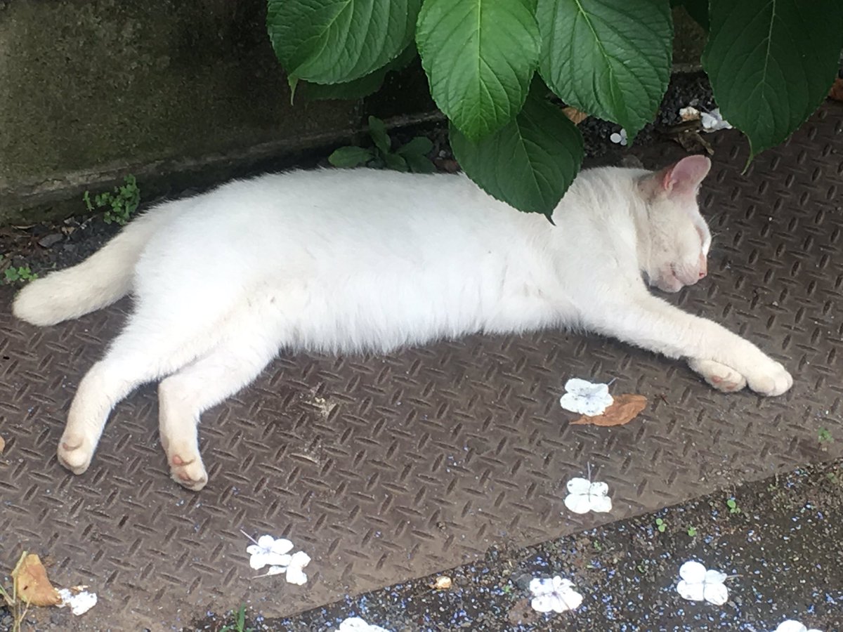 突然現れた白猫。守り神のごとく出てきて、しばらくすると静かに消えて行きました。 https://t.co/VUL3uYk5hy