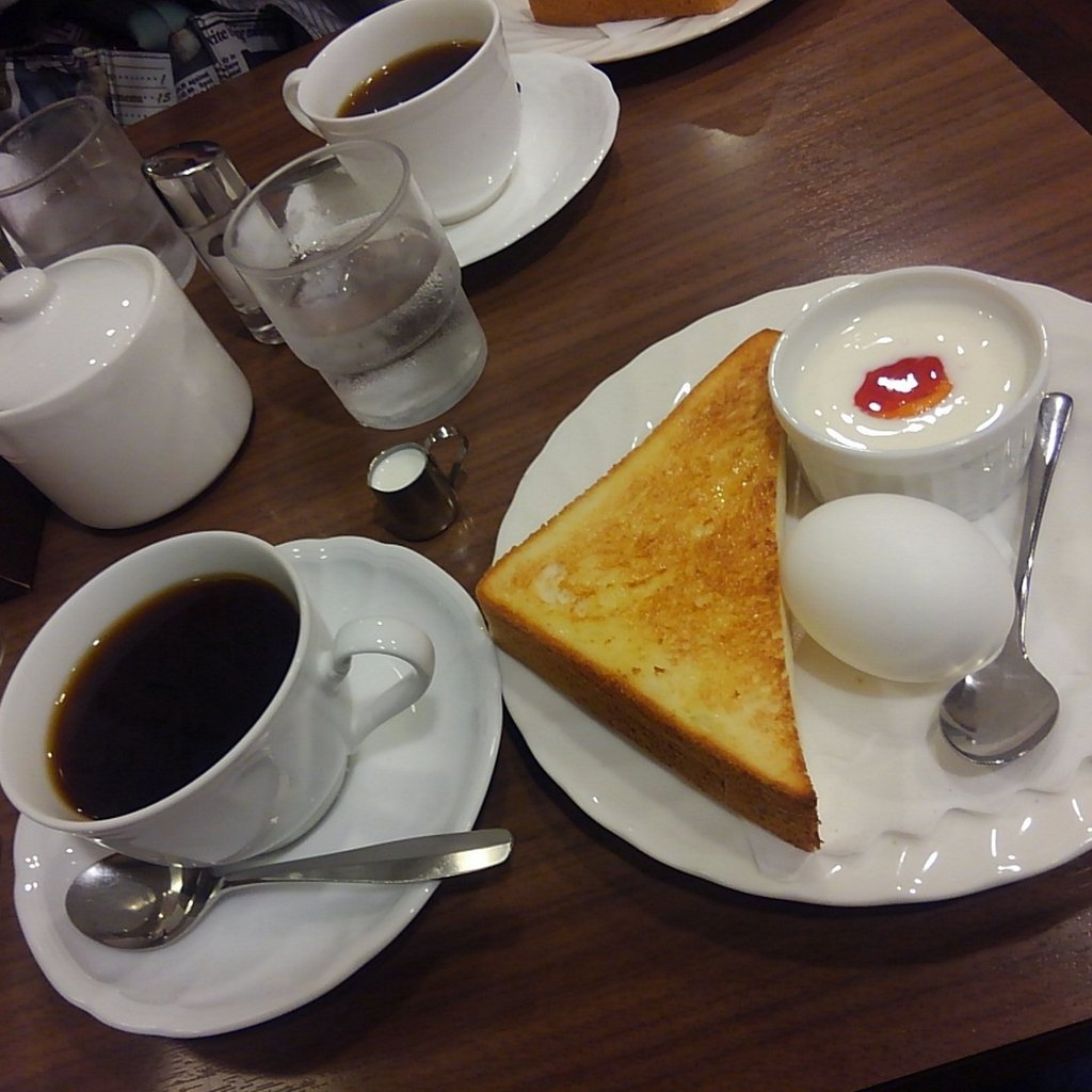 朝イチの名古屋出張で、待ち時間潰すのに喫茶店入ってコーヒー頼んだら、トーストと卵を食わされることになった(・ω・) ♯名古屋あるある ♯モーニング