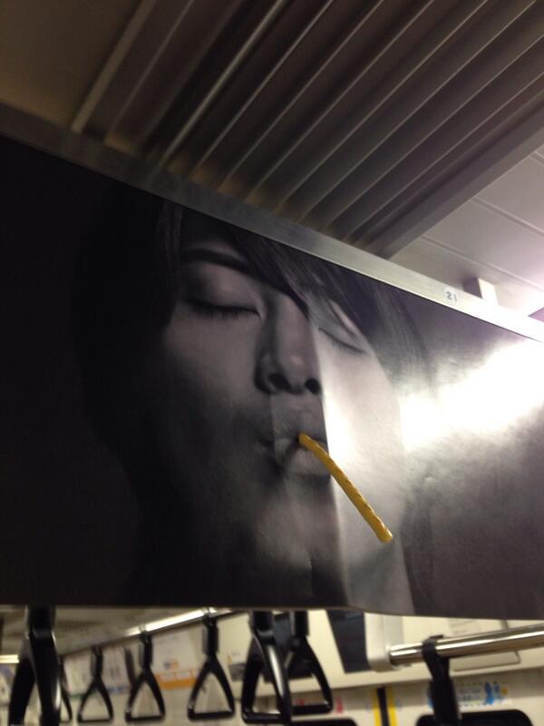 出典:電車内に筆がぶら下がっている!? 斬新なデザインの中吊り広告が目撃される (2016年4月22日) - エキサイトニュース