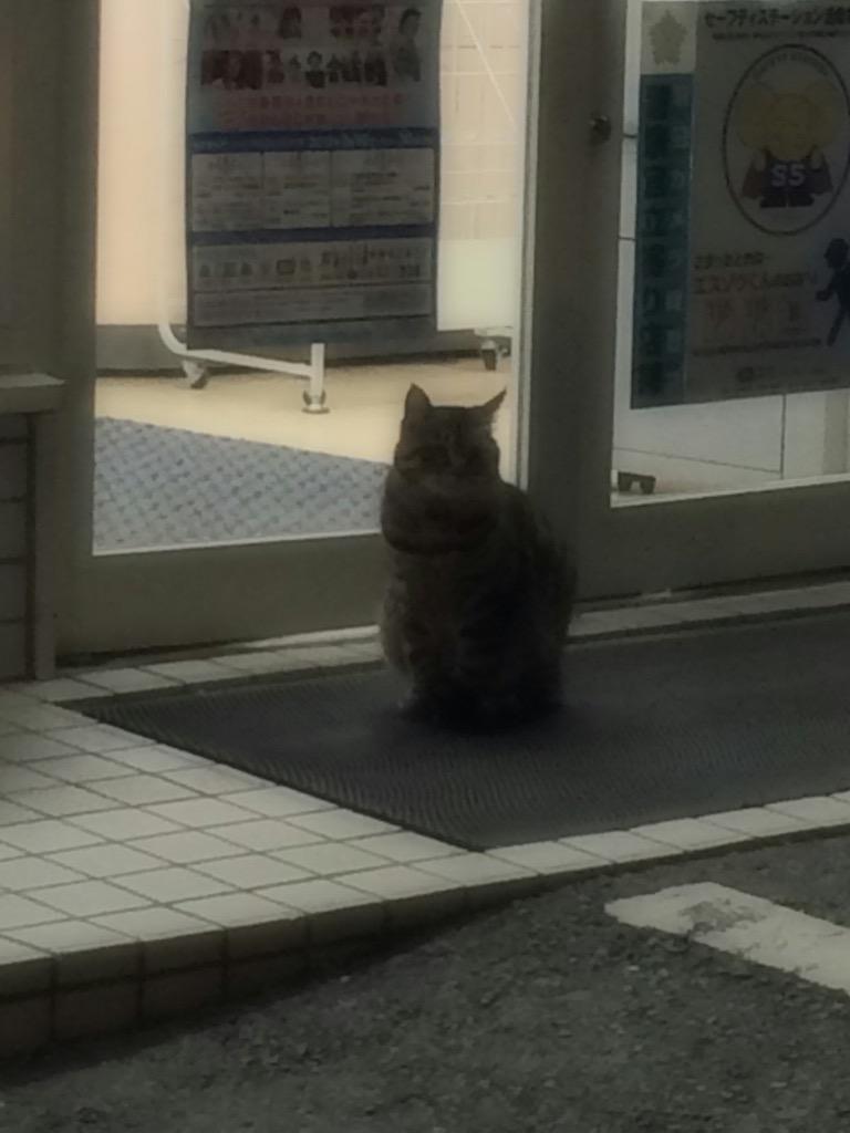 ホテルの前のコンビニの入り口にいた野良猫。エサを待っているのかなぁ〜? http://t.co/vDVVQSCf5O