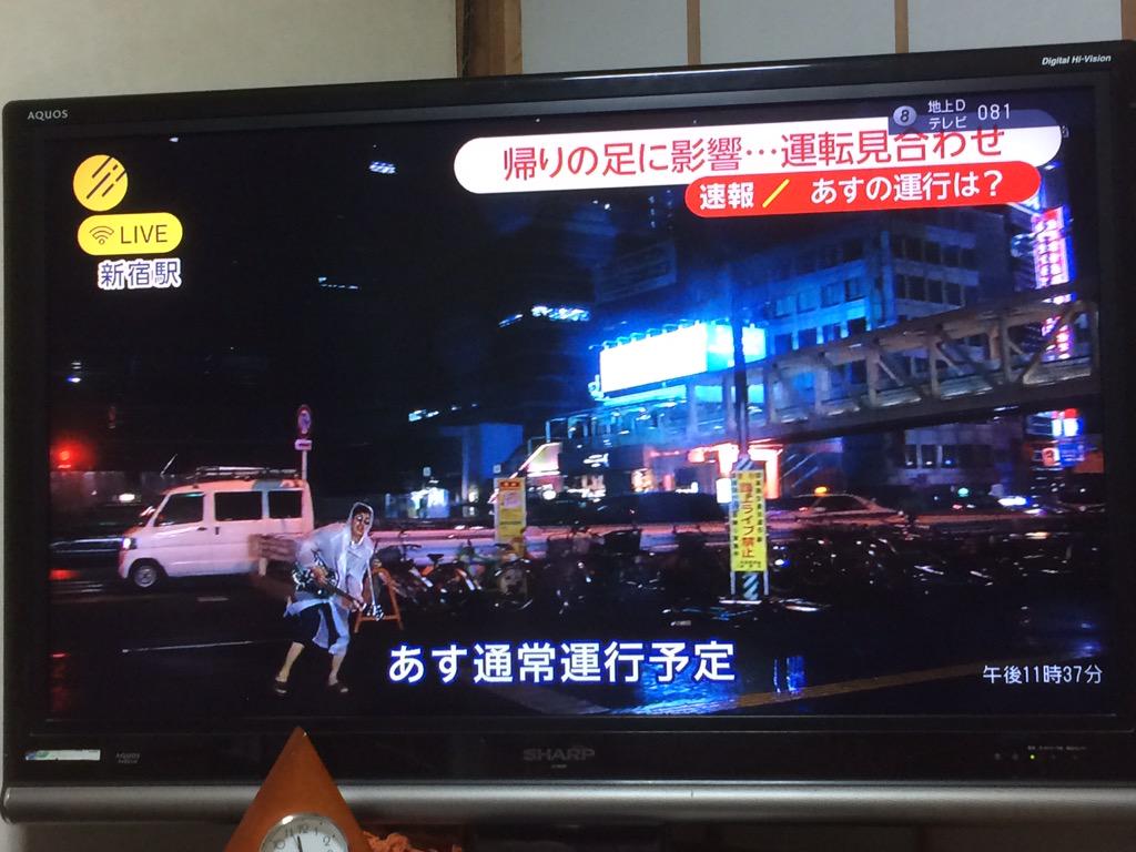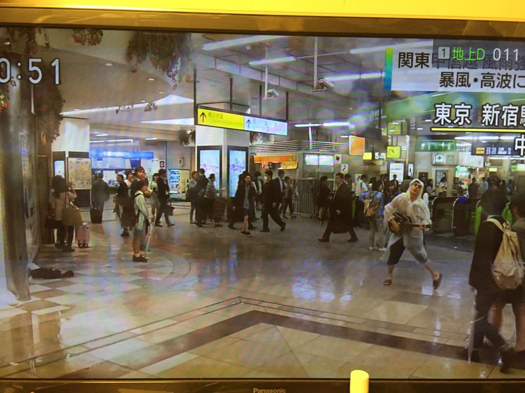 新宿駅からの中継にバック転する奴とかカッパ着てギター弾いて熱唱しながらフレームインしてくる奴おってクソ笑ったwwwwwwwww http://t.co/jsm9fAOCwM