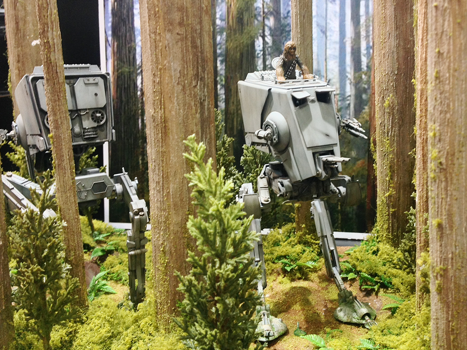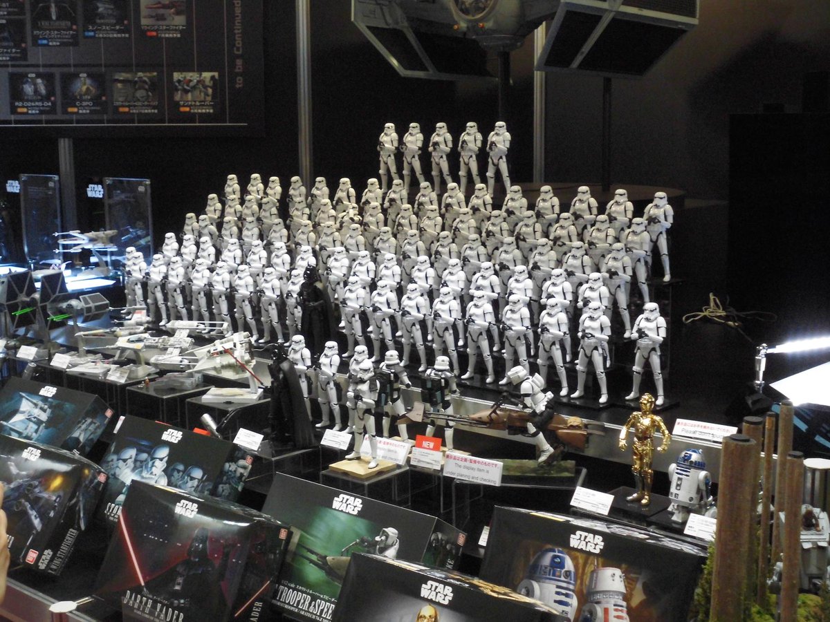 人気アニメ「機動戦士ガンダム」のプラモデル発売35周年を記念した作品や、映画「スター・ウォーズ」の新作公開にあわせたプラモデルも展示。