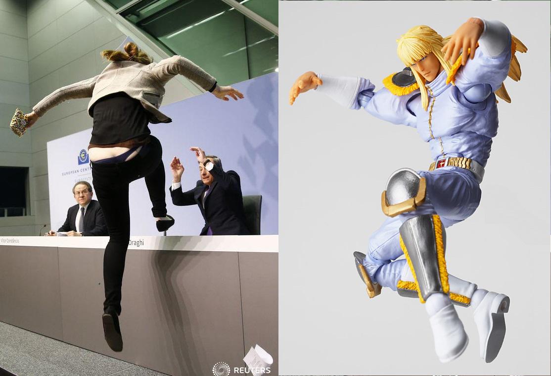 出典:欧州中央銀行の会見に乱入した“南斗水鳥拳”を操る20代女性 Twitterフォロワーが約10倍に - ねとらぼ