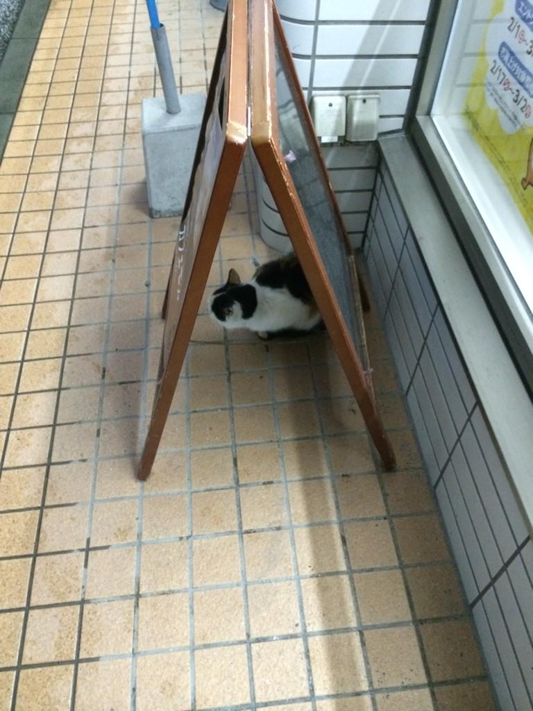 ホテルの前のコンビニの入り口にいた野良猫。エサを待っているのかなぁ〜? http://t.co/vDVVQSCf5O