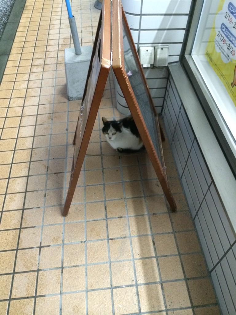 野良猫のはっちゃん、今日はお好み焼き屋さんで呼び込みしてましたw