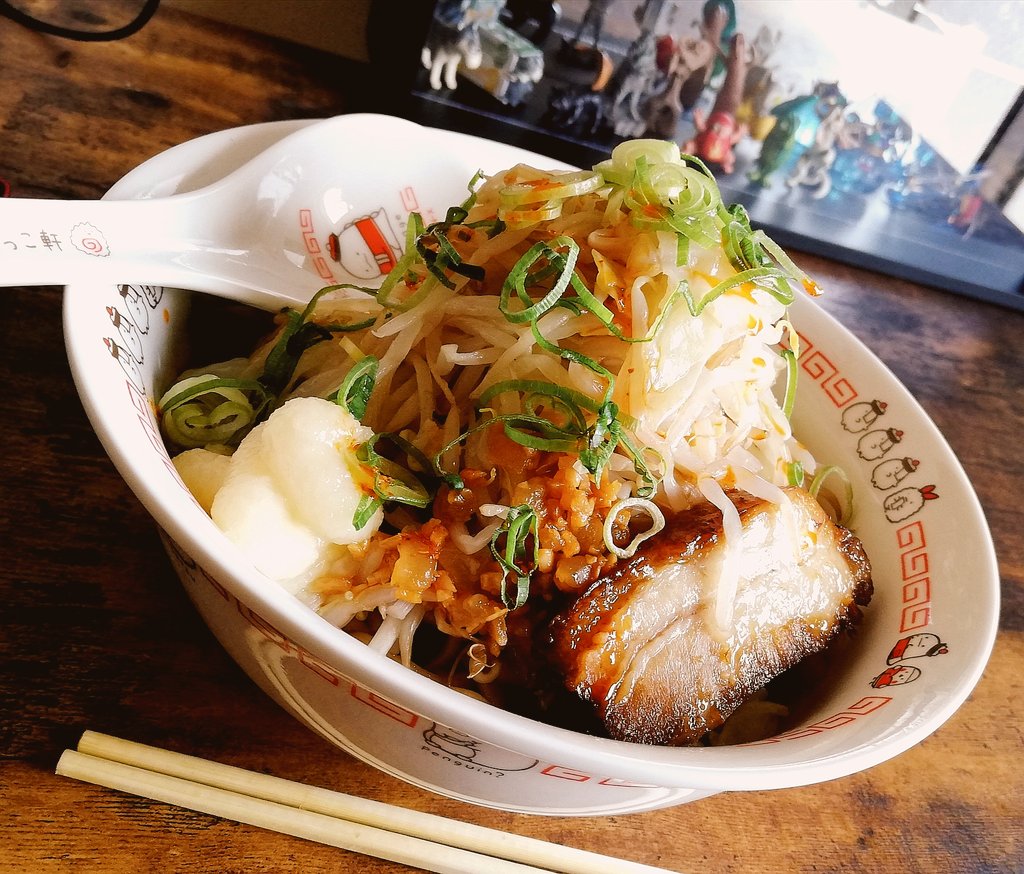 @cockroachism すごい魅力的なマシマシでお腹が悲鳴をあげています、ネギの彩りが素敵ですね!