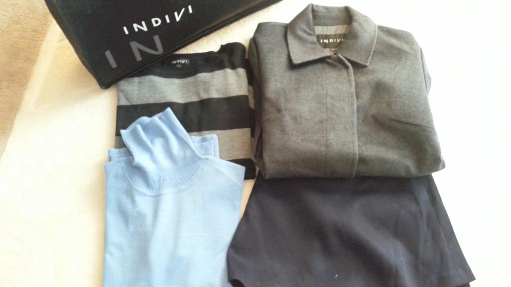 イネドのいちまんえんの福袋ー、ザ、会社用!ときめきはないけれど、だいたい使えるー。グレーのニットこないだも買ったわ!黄色のニットは着ないので開けてもいない…。