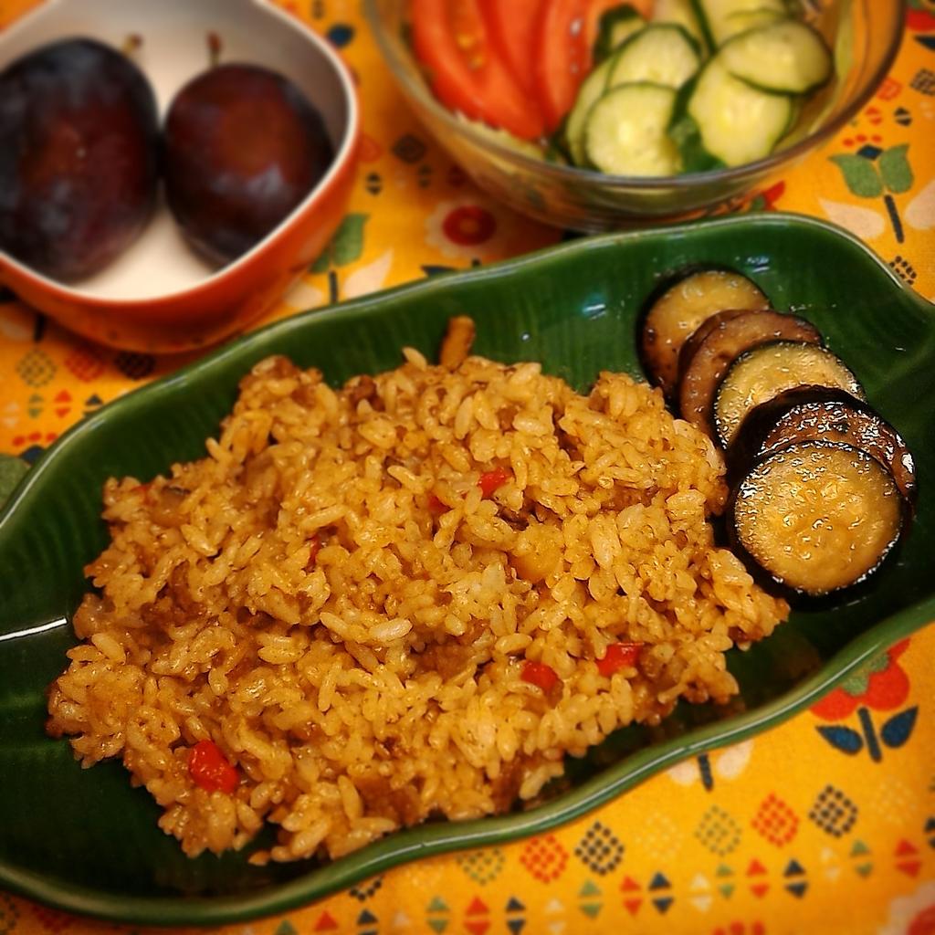 先日作って残ったドライカレーの具を使って今朝はカレーピラフにしました❗